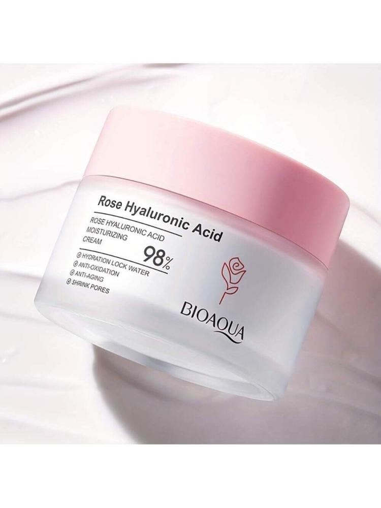 كريم بحمض الهيالورونيك بتركيبة الورد الفعالة يمنح بشرتك ترطيباً مكثفاً، يساعد على تفتيحها، شدّها، وتقليل مظهر المسام مثالي للاستخدام الليلي لتغذية البشرة واستعادة نضارتها أثناء النوم.