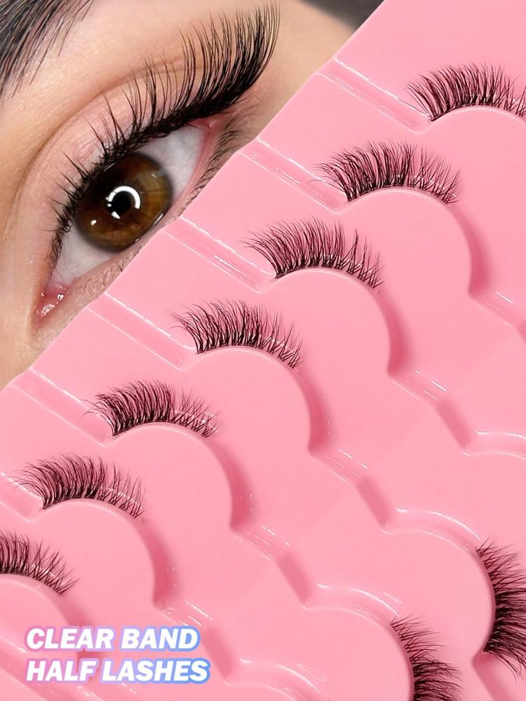 Asiteo 7 أزواج من رموش نصف العين ذات الشريط الشفاف والطبيعي، ذيل العين، العين القطة، نعومة وخفة مناسبة للمبتدئين وسهلة الارتداء للاستخدام اليومي والمناسبات